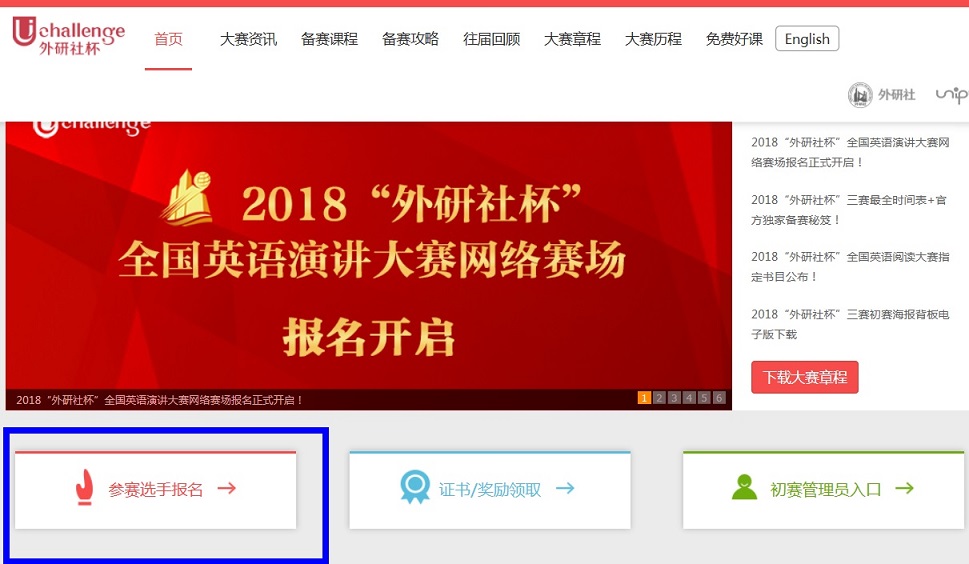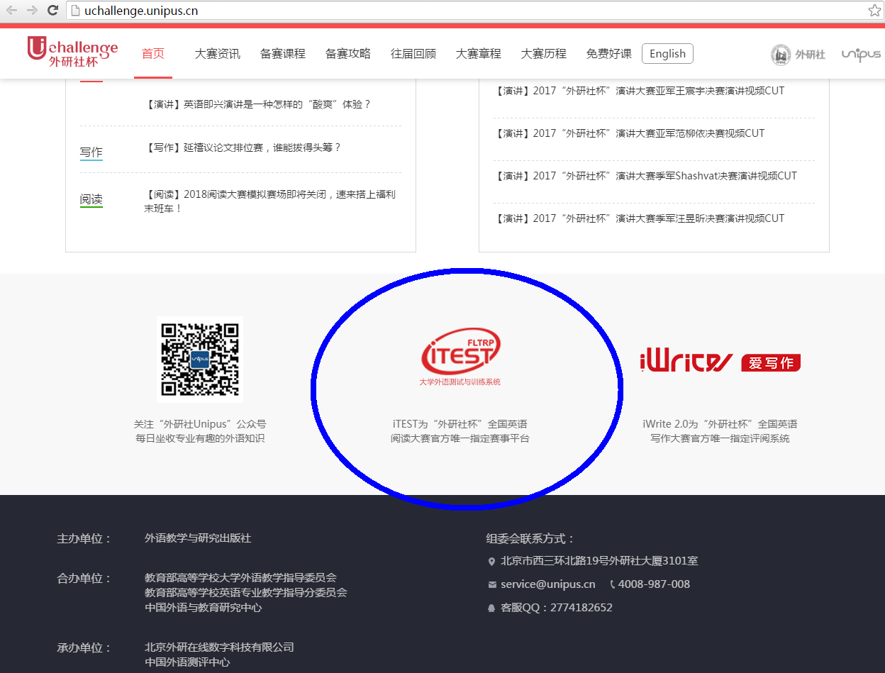 已经报名的同学生可以在自己的电脑,使用谷歌和火狐浏览器,登陆外研社大赛官网,下拉到底部,点击“