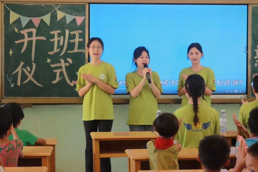 暖心支教,上好微课堂。为助力乡村教育的发展,阳光展翅团以“激发兴趣、开拓视野”为导向,开展下乡支教活动,开设了趣味英语课堂、多彩美术课堂、青春舞动课堂和音乐文化课堂。文艺支教英语组小老师们,带领赤尾村的小朋友巩固课内知识和普及英语文化课外知识,拓宽了小朋友们的知识面;文艺支教美术组小老师们巧用趣味加分小环节,与小朋友们一同投入精彩有趣的绘画,提升了小朋友们的动手能力;文艺支教音乐组小老师带领小朋友们打造舞动青春课堂,每一个音符、每一个动作都洋溢着朝气蓬勃与光活力。支教组小老师以青春与童真,用以大手牵引小手,守护赤尾孩子们走向更广阔的远方。
