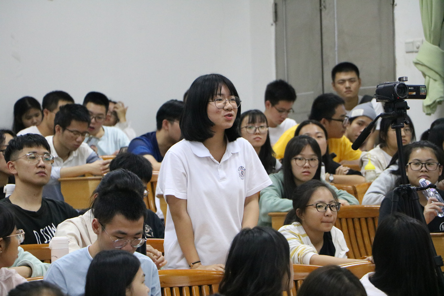 潘文晗根据2020年7月与9月大学英语四级考试的试题,分析大学英语四级题型与复习对策,并指出同学们要在英语学习中不断增强文化自信,提高用英语讲好中国故事的能力。罗正强调知识的积累与阅读习惯的培养要靠平时的积累,可以将精读与泛读结合,多看中国日报的双语新闻。在听力和写作方面,林立文结合自己在广东省高校英语写作比赛二等奖的备赛经历,分析了提高英语基本功的重要性,还有写作的常见题型与解题方法。在观众互动环节,同学们积极提问,与老师和嘉宾积极互动,与会师生均表示收获颇丰。