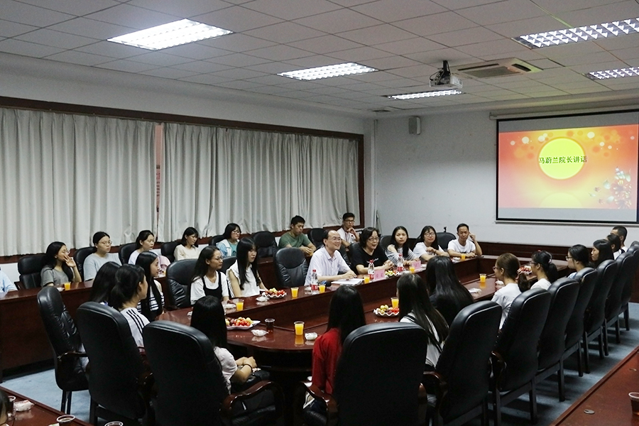 值此中秋、国庆双节来临之际,9月21日下午三点,suncitygroup太阳新城在第二行政楼308举行了以“迎中秋,贺国庆”为主题的师生座谈会。出席本次座谈会的有suncitygroup太阳新城马蔚兰院长、党总支徐超书记、学院团委书记雷肖茹、学生会指导老师郑灿玲、刘丽萍、戴玮、刘万里等老师以及各年级学生代表五十余人。