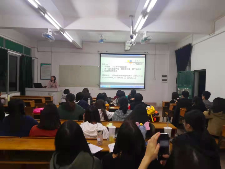 【主题教育进行时】不忘育人初心,牢记服务使命——我院举办“秋实讲坛”之德语专业四级考试专题讲座