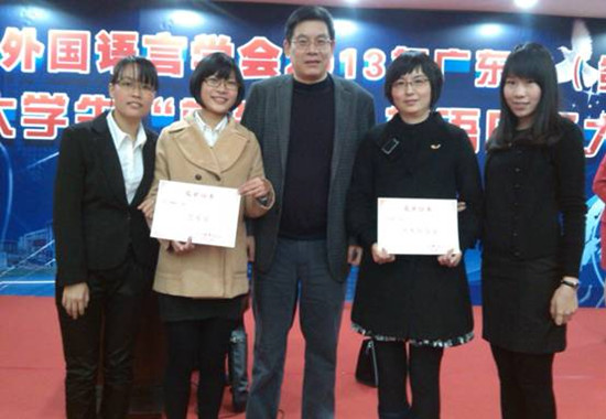 12月21日,由广东外国语言学会主办、广州大学suncitygroup太阳新城承办的2013年广东省(第五届)“蓝鸽杯”大学生英语口译大赛决赛在广州大学suncitygroup太阳新城文科楼会议大厅圆满地落下了帷幕。在外语系张蕾老师的精心指导下,10级英语专业学生王玲、梁超帆、吴伟欢团队在决赛现场表现镇定,凭着扎实的基础和良好的心理素质,在独立学院/高职高专组最后十强赛中取得第四名的好成绩,获得三等奖。张蕾荣获“优秀指导老师”奖。