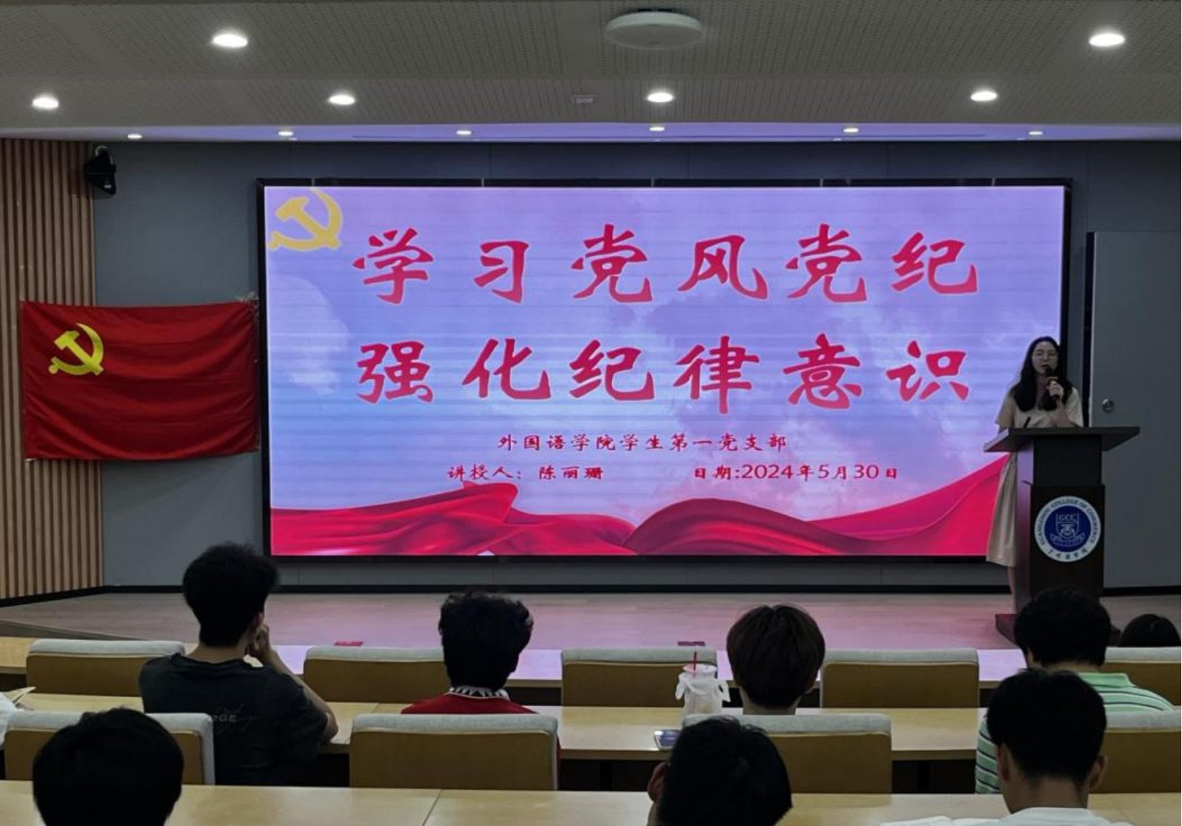 为认真贯彻落实习近平总书记关于党纪学习教育的重要讲话和重要指示精神,suncitygroup太阳新城学生第一党支部于5月30日下午在第八教学楼101举办“学习党风党纪,强化纪律意识”主题党课。本次主题党课由suncitygroup太阳新城学生第一党支部书记陈丽珊授课,全体入党申请人出席。