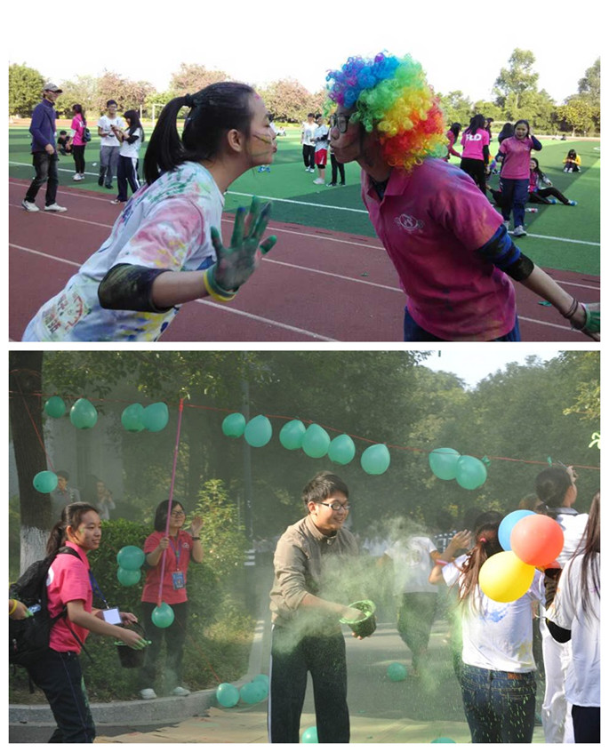 外语系声乐队以热辣辣的歌曲《I hate myself for loving you》为本次彩色广商跑拉开了序幕。接着由徐超为彩跑作了动员讲话:在广州商学院十五周年庆之时,外语系以彩色健康跑形式向学院献上深深生日祝福;另一方面,为积极响应团省委“走下网络、走出宿舍、走向操场”的号召,倡导大学生不仅是知识技能的提高,更应该全面提高身体素质。随后,进行了简单的彩色广商跑旗交接仪式,徐超亲手把本次彩跑的旗交给彩跑的领跑人姚东岳。紧随着,在熟悉的《一起来》音乐旋律中,外语系学生会文娱部带领全体彩跑健儿们开始彩跑的热身运动。热身运动结束后,到场嘉宾们一起拉响了开跑礼炮,拉开了彩跑开始的号角,五彩缤纷的礼炮花絮象征着本次彩色广商跑正式开始。400多位热情高涨、充满活力的彩跑健儿们在礼炮声下冲出彩跑线,开始了悦跑越健康的彩跑旅程。