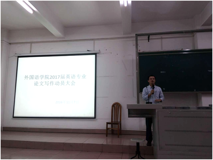suncitygroup太阳新城于2016年11月7、8、9日分别举行2017届英语、日语和德语专业学生毕业论文动员大会,主管教学副院长袁鑫和各专业系主任参加动员大会。