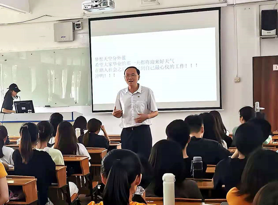 【编者按】为贯彻落实立德树人根本任务,突出我院“三小一高”应用型人才培养特色:即英语教育小教师、涉外行业小职员、跨境贸易小老板和考研出国高层次人才,帮助低年级学生进一步明确就业方向。学院于4月24日在第三教学楼104举办了外贸类专场求职经验分享会,党总支书记兼副院长、考研专业指导老师徐超副教授和相关辅导员参加了分享会。