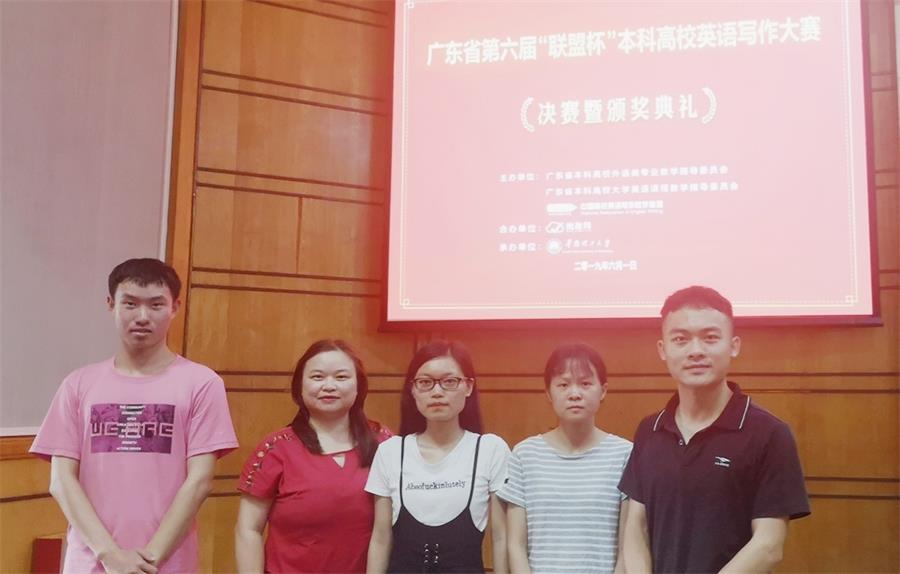 广东省第六届“联盟杯”本科高校英语写作大赛决赛于2019年6月1日在华南理工大学成功举行。来自广东省58所高校的264名决赛选手从162251名初赛选手中脱颖而出。我校外语学院彭铭亮同学获得英语专业组二等奖、金融学院陈树邦同学获得大学英语组二等奖、外语学院郭丹宜获得专业组三等奖、会计学院李冰冰同学获得大学英语组三等奖。