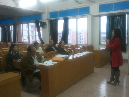 本次比赛主要包括说课、答题和点评三个环节。参赛教师说课的材料由评委组于赛前半小时提供,并且做好说课使用的ppt,进入比赛现场后马上进行说课,然后回答评委提出的问题,最后接受评委组的点评。这些环节极大程度上考验了年轻教师的语言功底、教学理论能力、备课能力和应变能力,充分展现了教师的个人教学能力和个人风采;整个比赛现场气氛热烈,参赛教师各展所长、各显其能;流利的英语表达、丰富的专业知识、生动活泼的授课方式、精彩的课堂活动设计、幽默的话语等都给评委老师留下深刻印象。