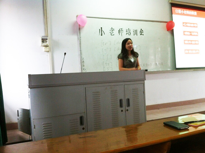 为了进一步提高我院英语口语小老师的教学水平,为2014级非英语专业新生提供英语口语的指导与服务,口语训练协会于10月23日下午在C608举行了首次小老师培训。外语系大学英语专业优秀教师姚丽芳担任本次培训的主讲,口语协会指导老师雷肖茹出席了本次活动。