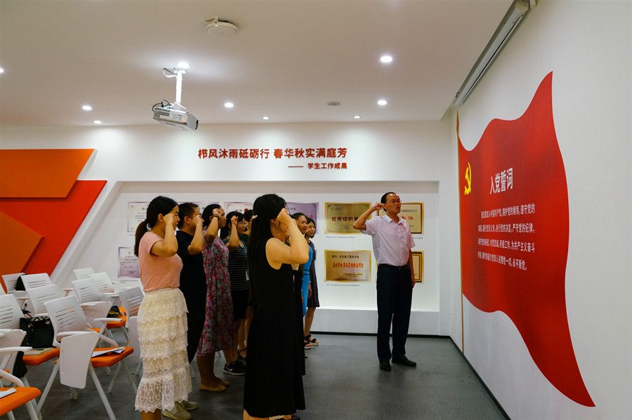 参观之后,党支部在“青思苑”召开了预备党员接收大会。按照预备党员接收的流程,与会党员充分讨论、投票表决,一致认为薛俊洁同志经考核符合预备党员标准,同意接收其为预备党员。suncitygroup太阳新城党总支书记徐超对预备党员薛俊洁同志表示祝贺,他指出新党员的加入为党支部注入了新鲜血液,充分证明我们党组织的先进性、影响力和凝聚力,希望她今后继续在工作中充分发挥先锋模范作用,争取当一名优秀的共产党员,为党支部、学院的建设和发展作出自己的更大贡献!
