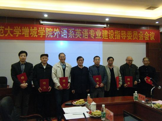 会上,李运生院长首先致感谢词,并向何广铿、卢植、何高大、余东、刘精香、彭长江、赵正清等7位委员颁发了聘书;袁鑫副主任讲述了外语系的现状,介绍了外语系系师资队伍建设、学科设置及办学思路;何广铿教授表达了他对如何建设师资队伍的意见,并提出了师资队伍建设明确的培养目标;卢植教授则表示,人才培养目标表述需要更加严谨准确;何高大教授对评估材料的内容、格式提出了明确的要求,并且建议在评估材料商体现的专业建设特色;余东教授表示,在实践教学、论文写作、课程定位、课程设置等方面提出了可行性的意见;刘精香教授认为我系评估工作和人才培养工作方面,还有待进一步深化,建议师资队伍建设由引进人才向培养人才过渡;赵政清教授建议系部制订一份人才培养方案具体实施细则;彭长江教授强调,在教学中应使学生英语基本功更加扎实。
