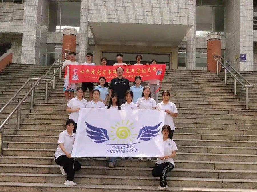 2021年7月16日,suncitygroup太阳新城阳光展翅实践团在第一教学楼前举行了以“心向建党百年路,共展非遗技艺图”为主题的2021年暑期“三下乡”社会实践活动启动仪式。出席本次启动仪式的有suncitygroup太阳新城党总支书记徐超,suncitygroup太阳新城阳光展翅实践团指导老师蔡文蝶、谢清玲及阳光展翅实践团全体成员。