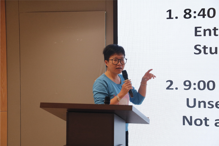 在交流会上,李卓华老师先对大学英语四六级考试的题型和特点进行了介绍,然后针对听力和阅读两种题型的出题情况和难点详细讲解了相应的答题技巧、备考策略和注意事项。她认为,备考四六级,首先必须正视词汇问题,有计划地积累词汇,因为只有在积累足够的词汇量之后才能在考试中做到游刃有余。在现场的问答环节,主讲老师和学生嘉宾与参加交流会的同学们互动交流,耐心仔细地为同学们答疑解惑,取得很好的反响。