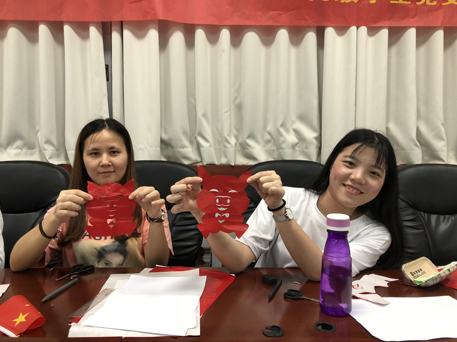 经过两个小时的课堂,一幅幅具有个性特色的剪纸作品展示在桌面上。这次党日活动,让党性光芒亮了起来,让传统文化活了起来,学生党员在欢声笑语中感受剪纸文化的魅力,发挥动手能力。
