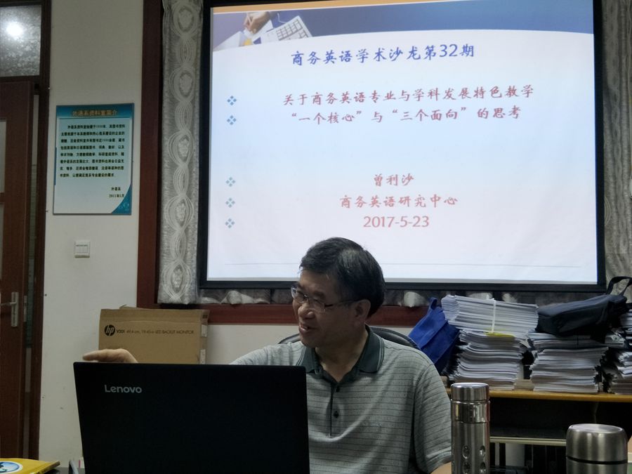 曾利沙教授在会中的研讨环节首先发言,全面诠释了“一个核心”和“三个面向”在商务英语专业人才培养模式建设的内涵。“人文学科应以“先进、科学、优秀、健康”的文化为中心,把人文知识化、精神化、智慧化,构建大商务范围的知识结构,把人文融合到商务英语教学的各个教学要素之中,培养学生研习态度,激励学生开创精神,传授学生学习策略。 “面向社会、面向国际、面向技术”,是商务英语专业突出比较优势的途径,商务英语专业学生通过为社会服务,提高语言能力,参加国际交流,扩宽视野,提高综合能力。