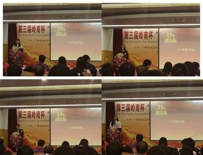 11月7日,第三届岭南杯“铭记历史,圆梦中华”英语写作技能大赛复赛和决赛在广州大学桂花岗校区隆重举行。在指导老师李卓华、皇婉贞和领队老师陈慧的带领下,我院共有11名学生前往参加比赛,其中7为同学以出色的表现,分别斩获特等奖、二等奖、三等奖。其中,外语系2013级何日兰和会计系2013级廖芙慧以精彩的口语答辩、扎实的英语知识分别荣获本次大赛专业英语本科组和公共英语本科组的特等奖,外语系2013级欧子琪和会计系2013级谭羽彤分获专业英语本科组、公共英语本科组二等奖,旅游管理系2013级何梓杰获公共英语本科组三等奖,外语系2012级严颖春、许晓珊获专业英语本科组三等奖。此外,外语系英语老师李卓华、皇婉贞、姚丽芳、张蕾、陈慧荣获优秀指导老师称号,我院荣获本次大赛的优秀团队奖。