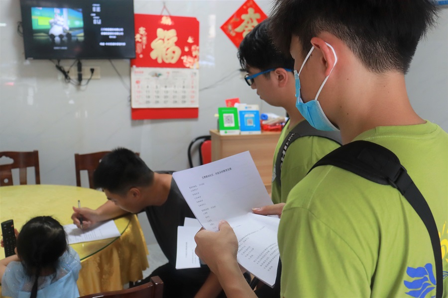 阳光展翅实践团队员在进行问卷调研