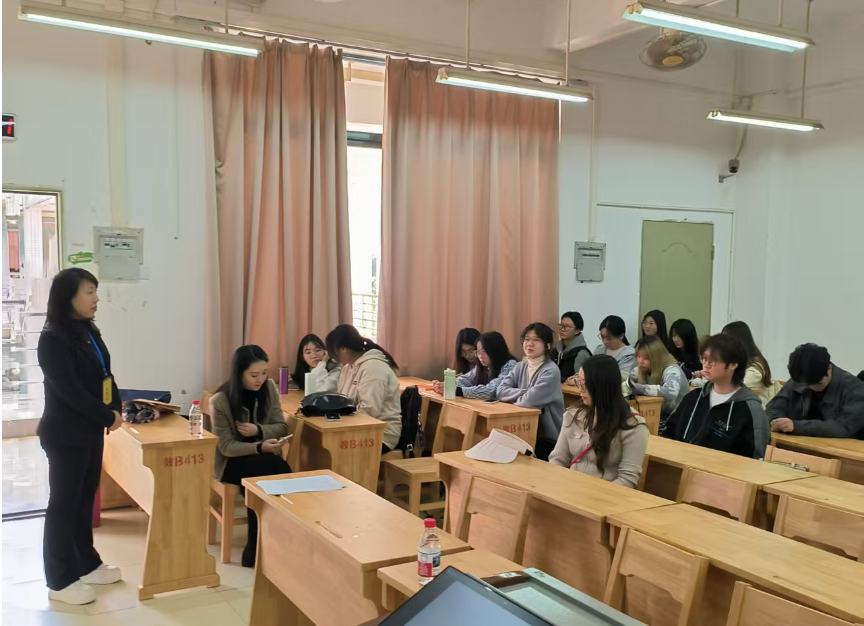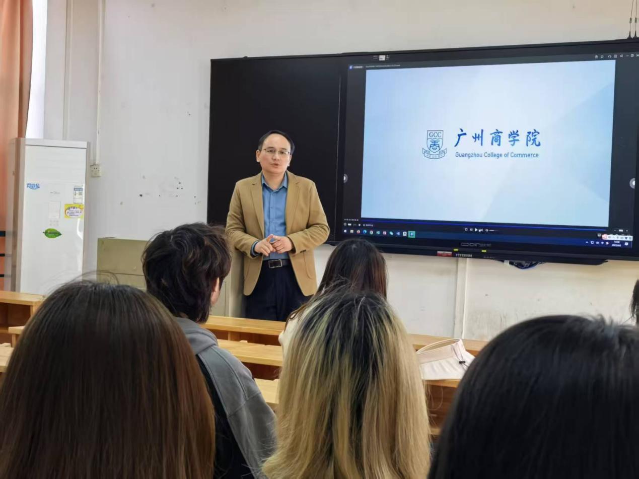 活动当天,李望华主任与2023级商英专业学生展开面对面交流。他首先播放了广州商学院招生宣传片,详细介绍了广州商学院suncitygroup太阳新城的办学愿景和商务英语专业特色,强调该专业依托跨学科课程体系,致力于培养兼具语言能力与国际商务视野的复合型人才。针对学生关切的学习规划问题,他重点分享了商务英语专业的就业前景、本科阶段学习方法、四六级备考策略,并鼓励学生在人工智能时代善用技术工具提升学习效率,同时注重培养批判性思维与跨文化沟通能力。张哲老师分享了本科阶段考研的辅导心得,鼓励大家树立远大目标,脚踏实地地学习,并在随后的互动环节中,回答了学生们就课程衔接、职业发展等的提问,现场气氛热烈。