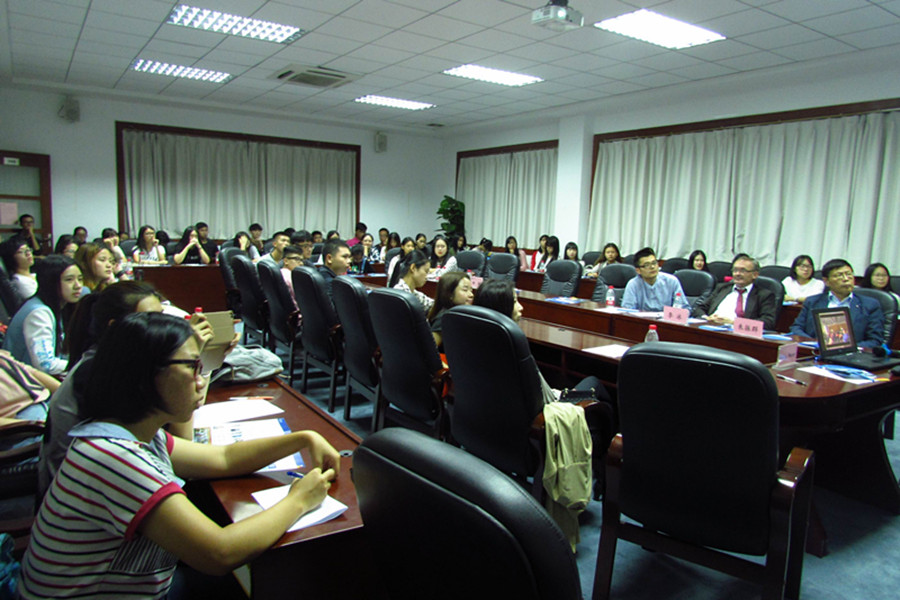 (德方校长向同学们介绍慕尼黑应用语言大学概况)