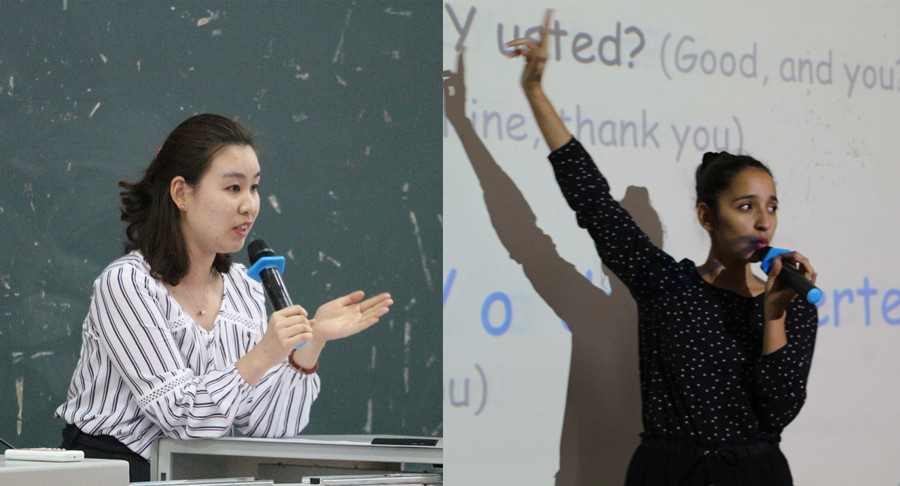 梁颖虹老师(左)和外教María José(右)主讲