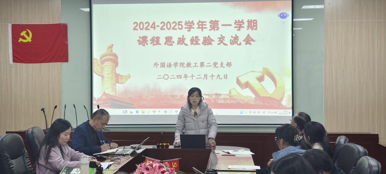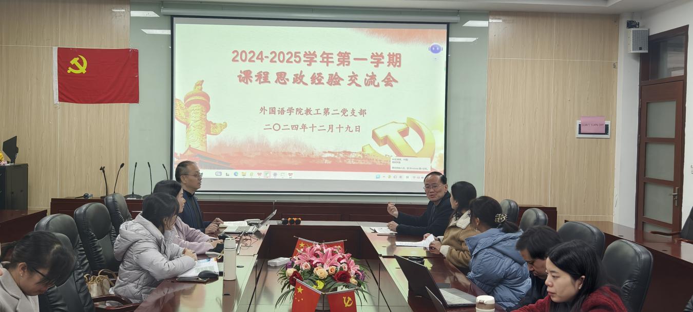 12月19日,suncitygroup太阳新城教工第二党支部于第二行政楼308室成功举办了课程思政经验交流会。会议由支部书记唐海民主持,麦影虹和范俊英两位老师作为主讲嘉宾,分享了她们在全国高校外语课程思政教学案例大赛中获得特等奖的课程案例设计经验。