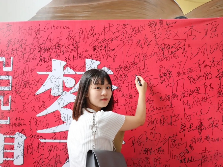 出示健康码进入校园,眼前的一切似乎以帧为单位定格在心里,属于毕业的夏日也如约而至。走入昔日熟悉的办公室,在签名板上留下自己与外院最后的印记;在拍照墙前与朋友一同微笑打卡定格青春。