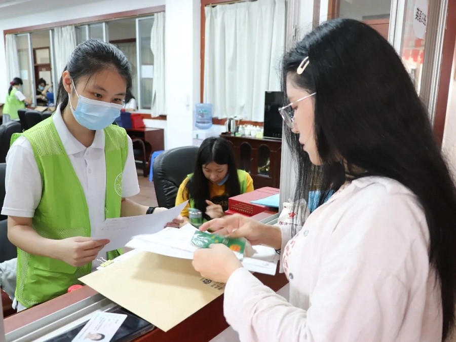 在志愿者的帮助下,毕业生领取毕业证书和学位证,以此作为大学四年时光的凭证与往日惜别,外语人将带着“中国的眼光看世界,世界的眼光看中国,世界的眼光看世界”的信念走向未来的旅途。