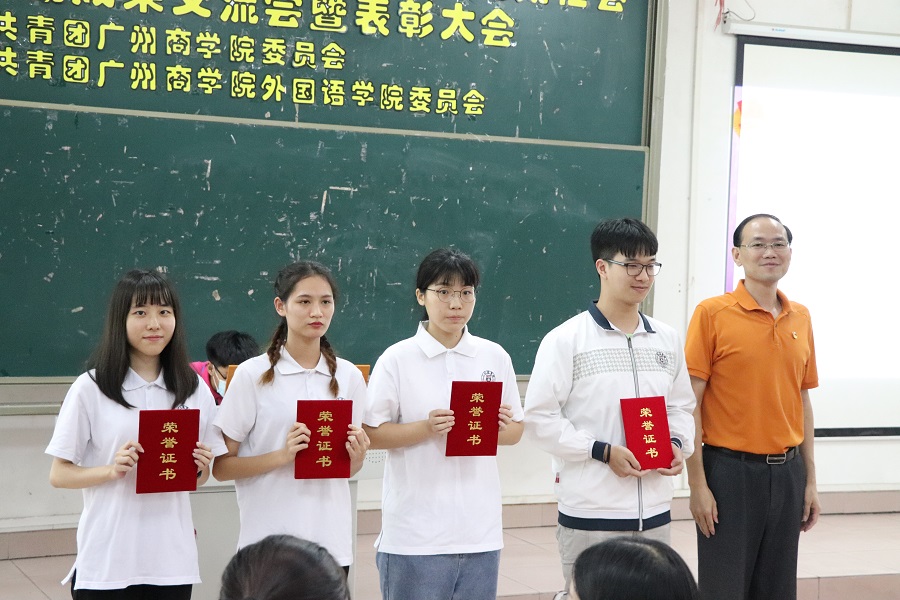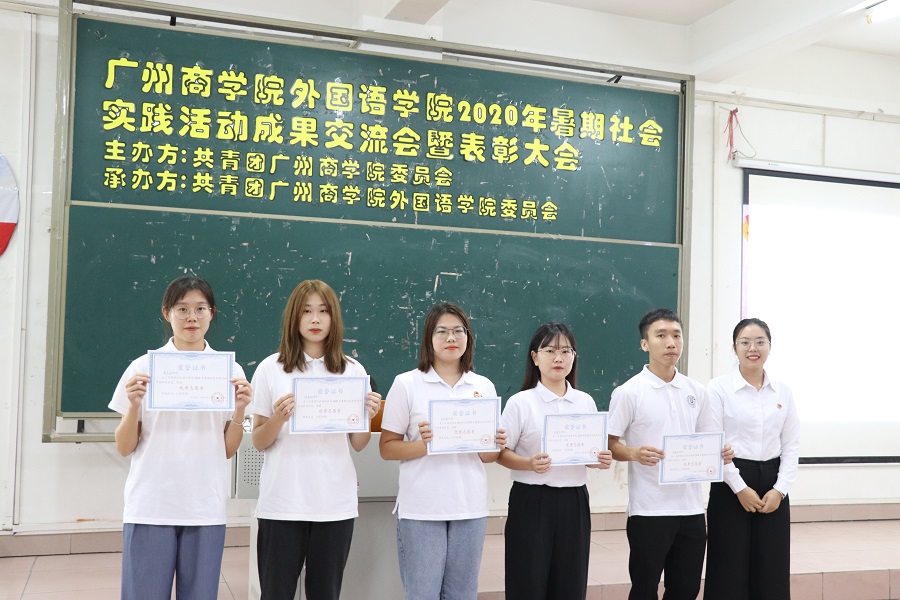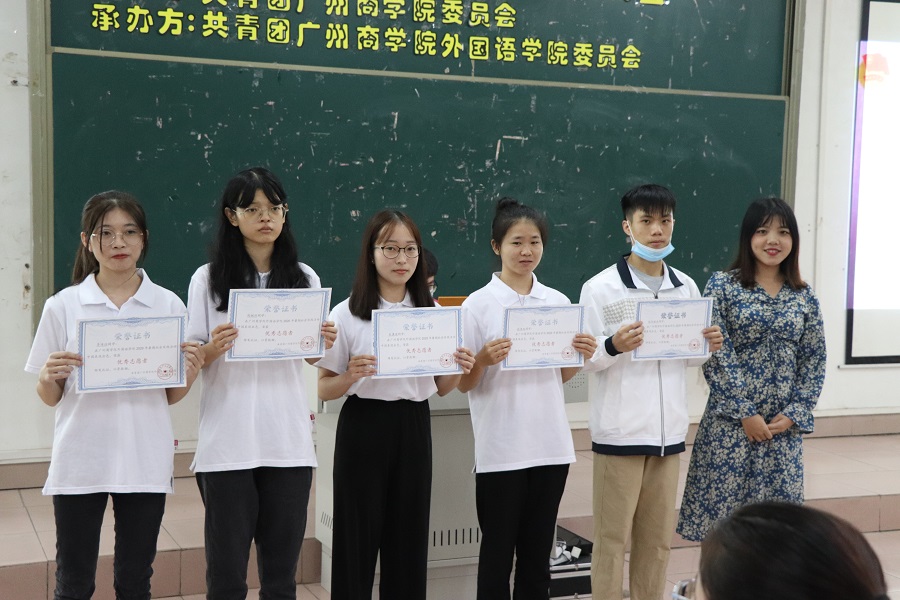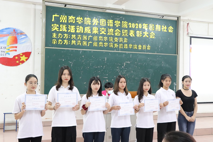接着,团委书记赖雯慧宣读《关于共青团广州商学院suncitygroup太阳新城委员会表彰2020年暑期“三下乡”社会实践活动优秀志愿者的表彰决定》。徐超书记、赖雯慧老师、伍思颖老师和蔡文蝶老师对优秀个人进行颁奖,获奖者有: