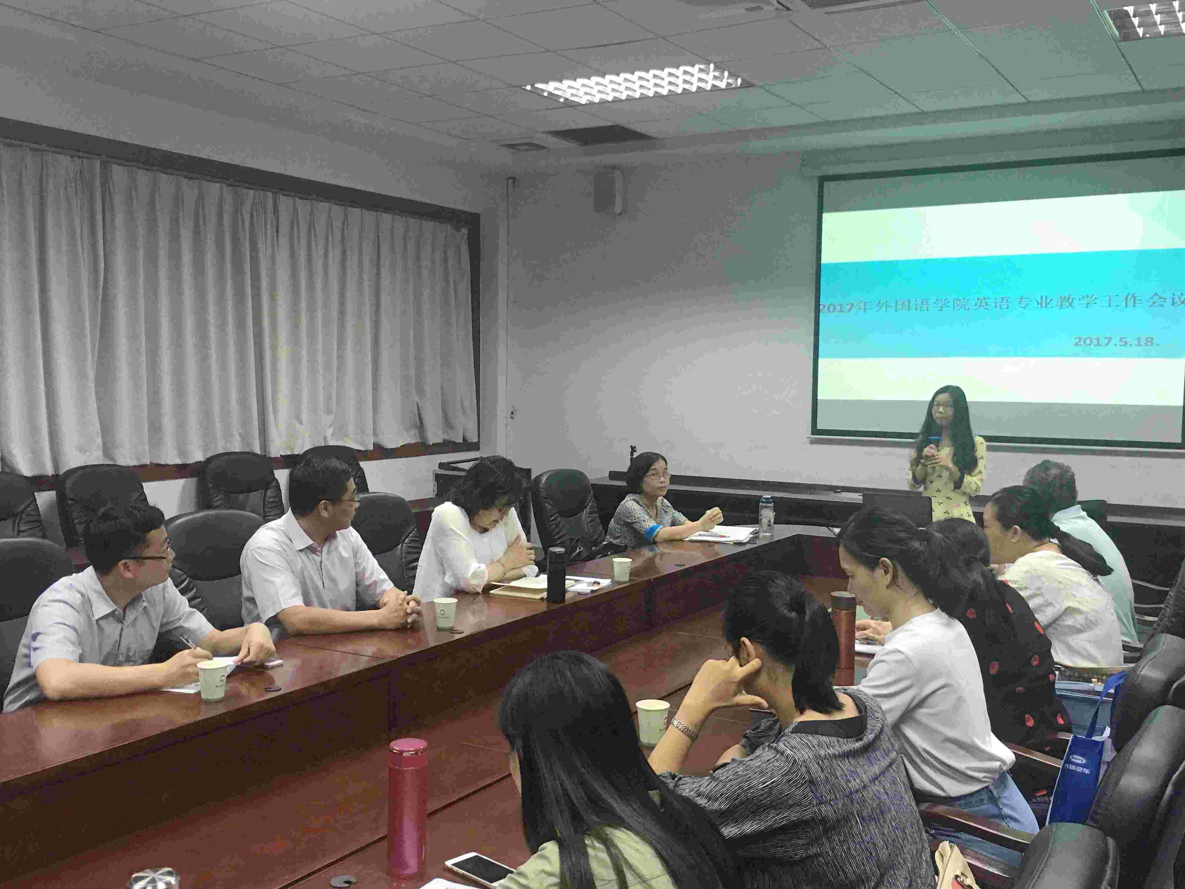 为了更好地落实广州商学院提出的“创新应用型人才培养模式,全面提高教学质量”的教学改革主题,suncitygroup太阳新城于5月17日下午在第二行政楼308召开了英语专业教学工作会议。会议由英语系系主任程瑜瑜主持,校长助理张忠福、suncitygroup太阳新城院长马蔚兰、副院长龙海英、教务处何茂炳副处长以及英语系专任教师出席了本次会议。