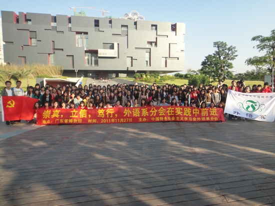 为了丰富广大学员的文化生活,提高文化素养,开拓知识领域,中国特色社会主义学习会外语系分会于2011年11月27日组织全系340多名学员参观了广东省博物馆,取得了良好的社会实践效果。