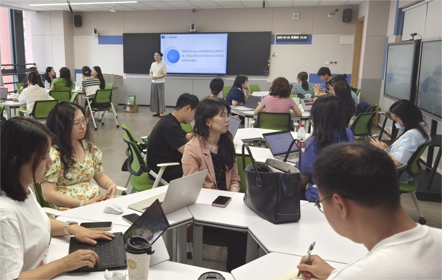 最后一场讲座由张蕾老师主讲,主题为“智能体训练”。智能体作为人工智能领域的前沿技术,在教育领域也展现出了巨大的应用潜力。张蕾老师从智能体的基本概念、原理入手,逐步引导教师们了解智能体在教育场景中的应用模式和训练方法。她以情感机器人训练作为案例展示了智能体如何模拟人类教师的行为。她指出,对智能体进行训练,可以提高教师的教学能力,同时能为学生提供个性化的学习指导和反馈,利用智能体开展互动式教学,激发学生的学习兴趣和主动性。讲座过程中,教师们对智能体技术充满了好奇和期待,纷纷就智能体的实际应用场景、技术实现难度等问题与张蕾老师进行探讨。
