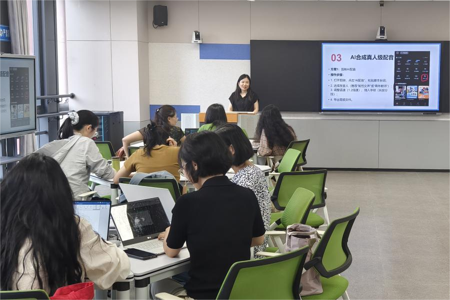 工作坊的首场讲座由姚丽芳老师主讲,主题为“AI制作微课”。姚老师凭借自身丰富的教学经验和对AI技术的深入研究,详细地介绍了如何借助AI工具高效制作微课。从微课选题策划、内容设计,到利用AI进行视频剪辑、配音、添加字幕等环节,姚老师都进行了细致入微的讲解,并结合实际案例进行演示。她强调,AI技术能够大大缩短微课制作周期,提升制作质量,让教师能够将更多精力投入到教学内容的优化上。