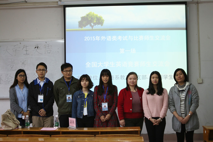 然后,2014年大学生英语竞赛全国特等奖获得者——2011级德语专业陈梓莹向大家分享了她的“作战”经验和技巧。她认为熟悉题型是非常重要的,它不仅可以提高做题速度还增加参赛者的信心;听力部分和作文部分是冲刺的关键。在日常学习英语过程中,可多听英文歌曲、多看美剧、多读全英书籍增强英语学习兴趣。2014年获得省级一等奖获得者12级日语专业的梁宇茜则指出,比赛中试卷完成度所起的作用不容小觑,“多做一点,得分就多一点”;单词是一门外语的基石,一定要活学活用单词,特别注重通过阅读的方式学习单词。老师、优秀学生代表对大学生英语竞赛的讲解引爆了全场的气氛,现场的学生与他们进行了热烈的互动。会后,很多同学反映此次讲座让他们受益良多。