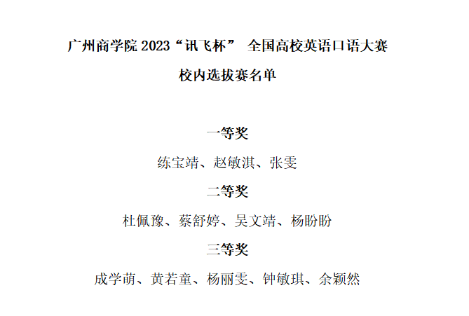 6月20日,2023“讯飞杯”全国高校英语口语大赛决赛落下帷幕,我院英语专业学子喜获佳绩,2020级张雯、练宝靖、赵敏淇分别获得广东赛区本科组二等奖、三等奖及优秀奖。