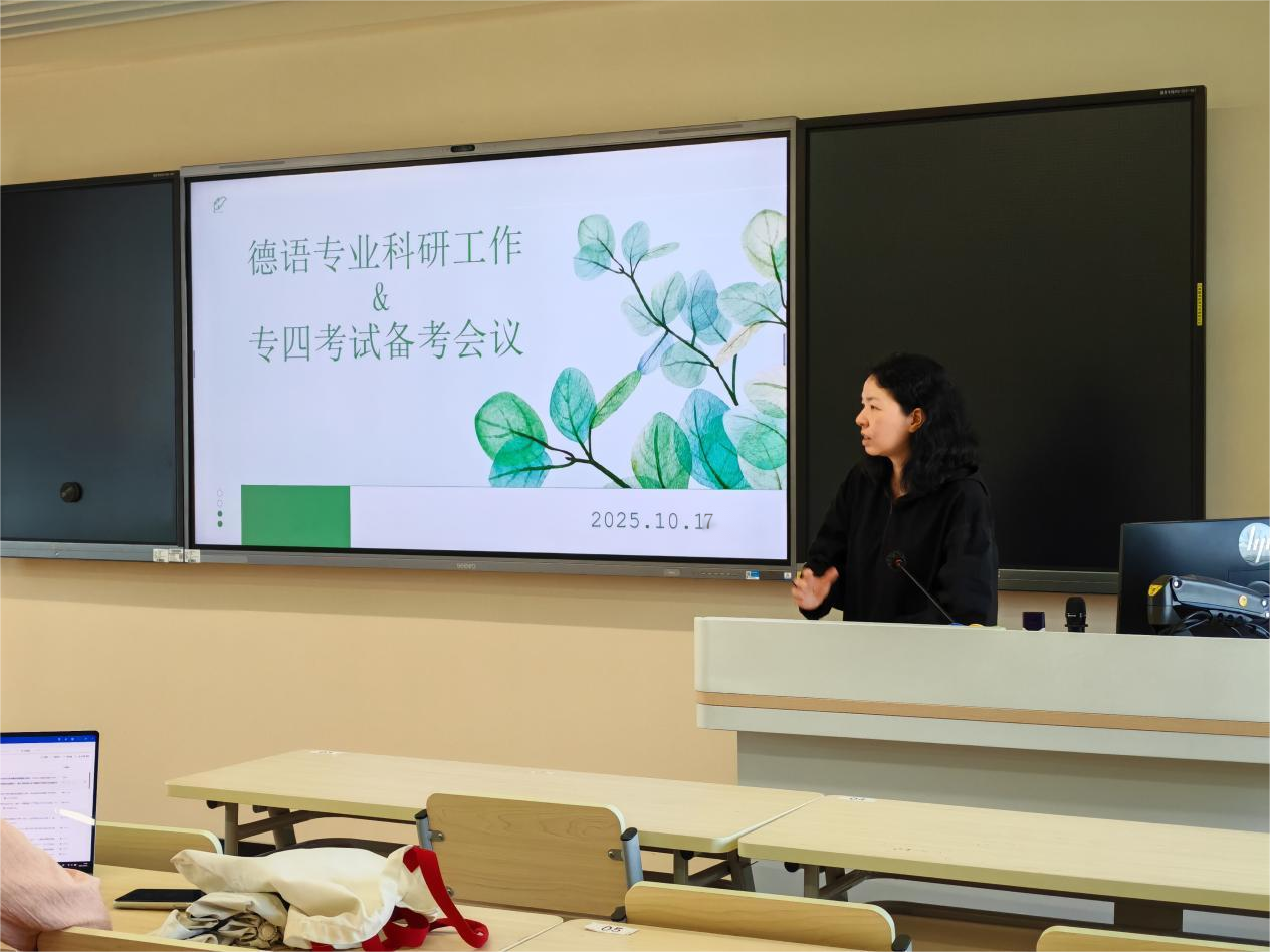 10月17日下午,suncitygroup太阳新城德语系召开“德语专业四级备考与科研工作专题会议”。本次会议由德语专业负责人潘艳老师主持,系主任周昳旸及全体德语教师共同参与。会议围绕德语专业四级考试备考策略与德语专业科研发展两大主题展开深入研讨,旨在统筹推进教学与科研协同发展,全面提升专业建设水平。
