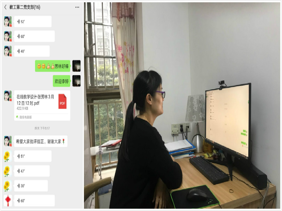 随后,围绕“疫情防控期间,教工党员应该怎么做”的专题,全体党员逐一分享了疫情期间的学习、工作和生活,并就线上教学工作进行了热烈讨论。