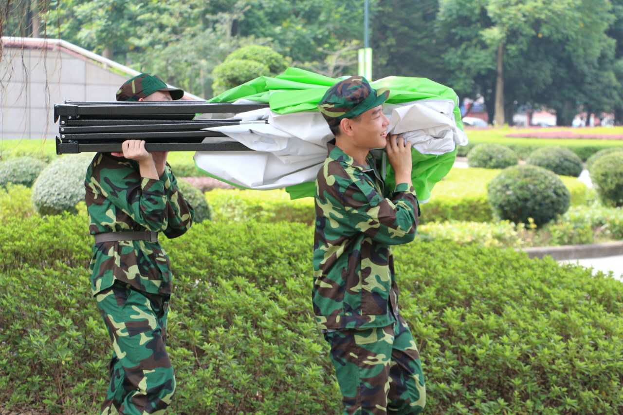 后勤兵正在搬运帐篷