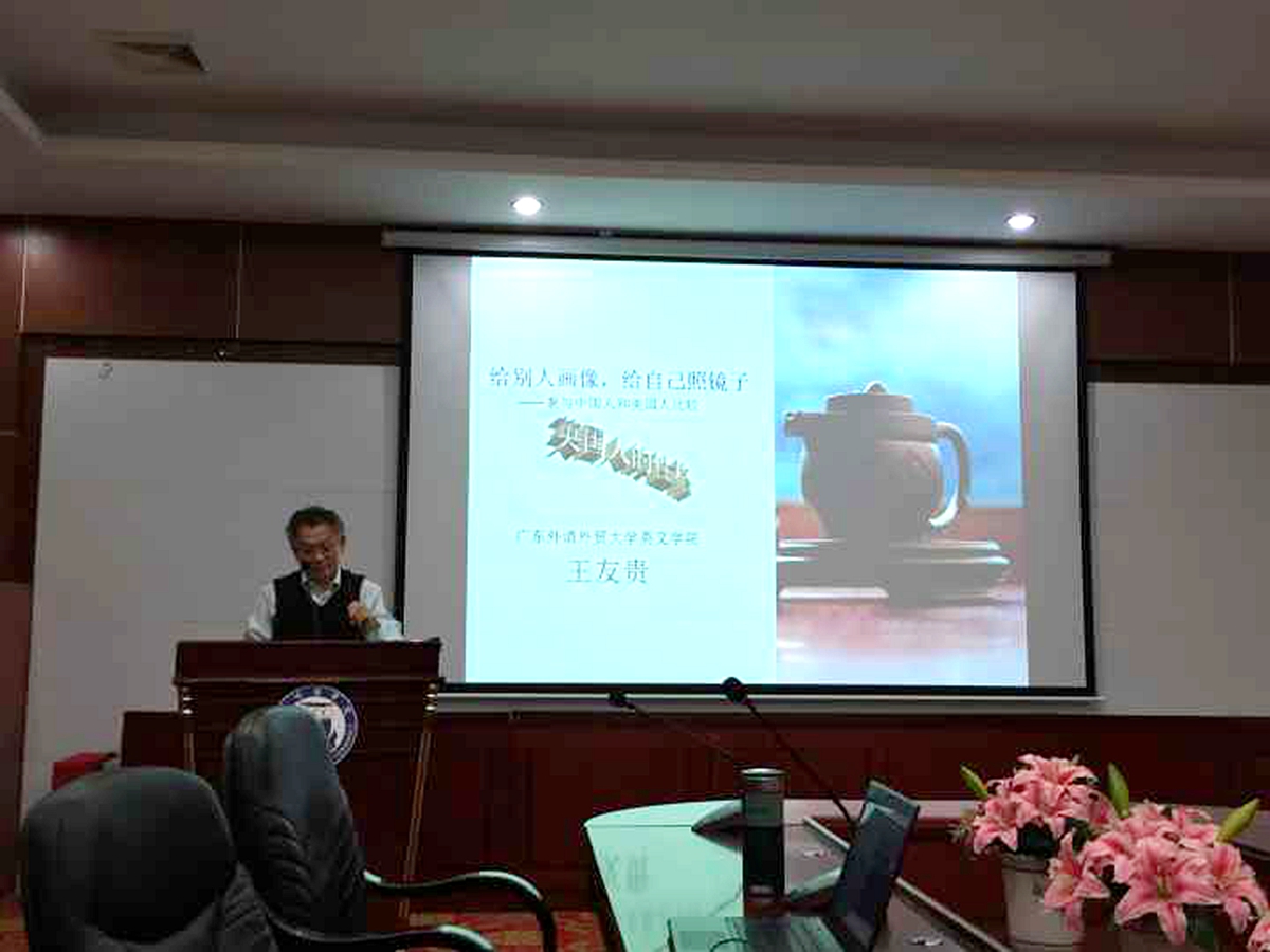 兰开斯特大学、英国剑桥大学从事研究。这次给学院老师带来的主题是The Future of the English—“给别人画像,给自己照镜子”,借由J.B.Priestley的作品介绍分析了英国人性格深处最根本的特质,从而引申至与其他民族(尤其是中国人和美国人)性格特征的差异。王教授提醒老师们要注意文本中作者角度和立场稍不注意便会对自己民族的思考产生偏差,如何保持一种对本民族若即若离的关系实则表现出作者写作的能力与水平。