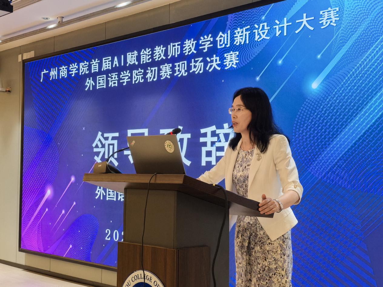 比赛伊始,郭遂红院长为大赛致辞。郭院长首先对莅临现场的评委、参赛教师及观摩教师表示热烈的欢迎和衷心的感谢。她指出,在当今数字化、智能化的时代浪潮下,人工智能技术正以前所未有的速度改变着我们的生活和工作方式,教育领域也不例外。AI赋能教学不仅是时代发展的必然趋势,更是提升教育教学质量、培养创新型人才的关键举措。她强调,suncitygroup太阳新城一直以来都高度重视教育教学改革与创新,积极探索新技术、新方法在教学中的应用。此次举办AI赋能教师教学创新设计大赛,正是学院顺应时代发展、深化教学改革的一次重要实践。她希望参赛教师们能够以本次大赛为契机,充分展示自己的教学才华和创新思维,将AI技术与外语教学深度融合,探索出更多具有创新性、实用性的教学模式和方法。