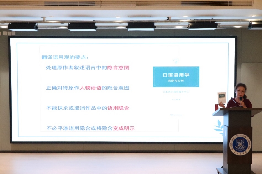 4月28日晚上,广州商学院suncitygroup太阳新城在第八教学楼201报告举办“广州商学院首届外语文化节之名师讲坛”。此次讲坛邀请suncitygroup太阳新城日语专业负责人刘小珊教授做了主题为“日语中的语用学——兼论毕业论文选题”的讲座。日语系2021级全体学生、日语系部分青年老师参加。此次讲座还吸引了部分2020级毕业班学生和大一大二的同学前来聆听。