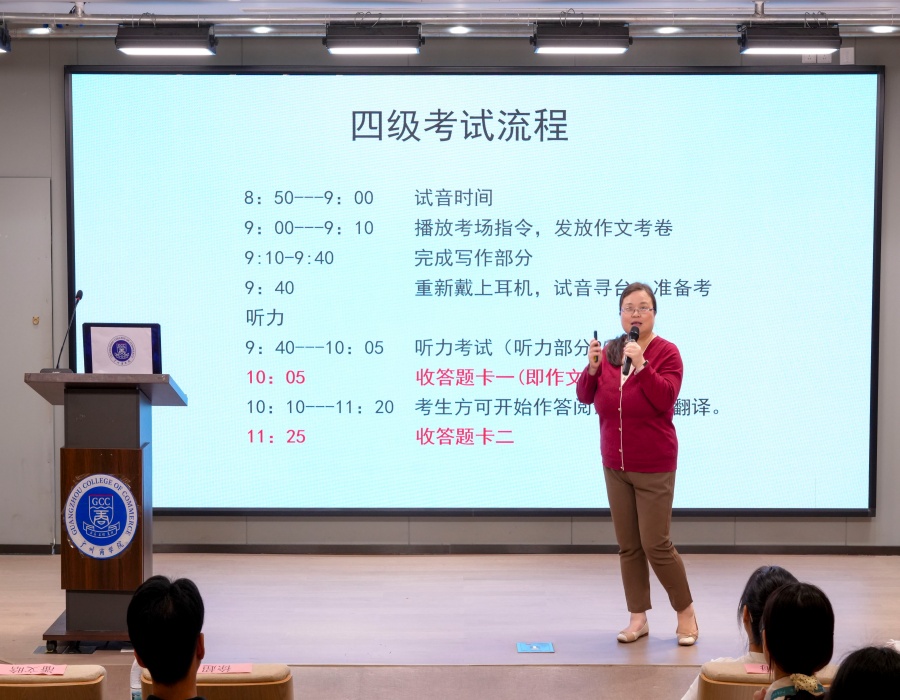 为深入学习贯彻党的二十届四中全会精神,发挥党员先锋模范作用,深入开展“我为群众办实事”实践活动,11月7日下午,suncitygroup太阳新城党总支联合校学生会,在第八教学楼202报告厅举办“秋实讲坛”大学英语四六级考试翻译与写作专题辅导讲座。suncitygroup太阳新城党总支书记徐超、校团委专职团干邓雪梅参加此次交流会,suncitygroup太阳新城党总支宣传委员潘文晗担任主讲老师,suncitygroup太阳新城蔡卓余和张静雯担任学生嘉宾。