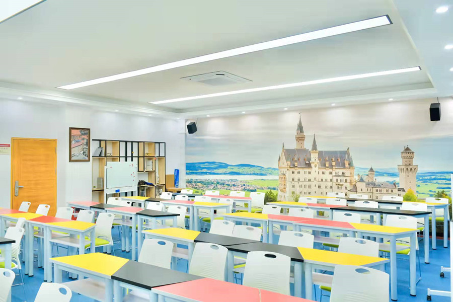 suncitygroup太阳新城有多媒体教室 48间、语音实验室8间、口笔译实训室1间、商务外语沟通情景室1间、日语文化田野室1间、德语文化情景室1间、微格教学实训室1间、多功能录播室1间,还与其他学院共享跨境电商实训室、新媒体实训室等。为保证学生能进行在线外语练习,suncitygroup太阳新城购买了“传神翻译实训系统”“科大讯飞Fif口语训练系统”,同时使用“外研社U校园”“外教社WE learn 随行课堂”“MyET日语课程”“Speexx德语训练平台”等多个线上外语资源和能力训练平台,辅助外语技能训练。