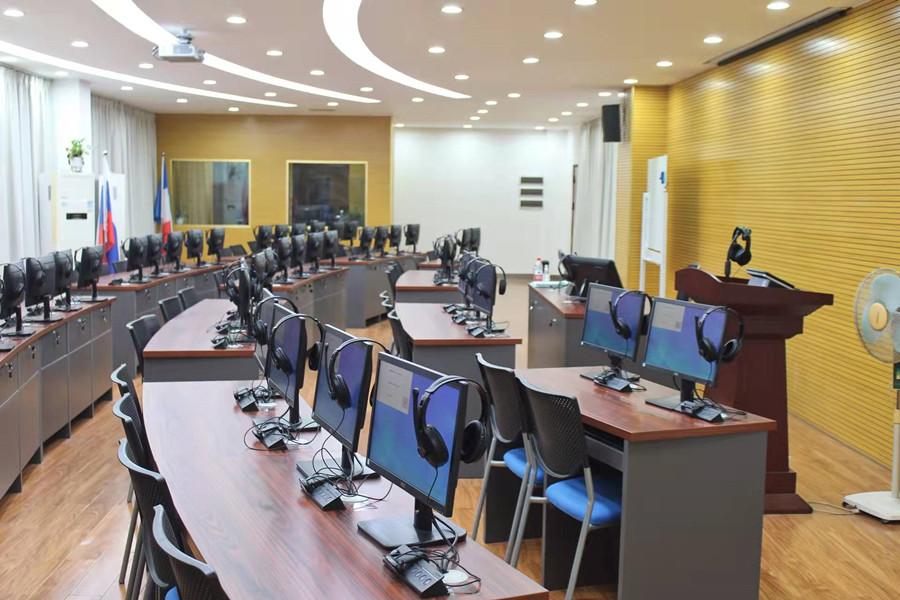 suncitygroup太阳新城有多媒体教室 48间、语音实验室8间、口笔译实训室1间、商务外语沟通情景室1间、日语文化田野室1间、德语文化情景室1间、微格教学实训室1间、多功能录播室1间,还与其他学院共享跨境电商实训室、新媒体实训室等。为保证学生能进行在线外语练习,suncitygroup太阳新城购买了“传神翻译实训系统”“科大讯飞Fif口语训练系统”,同时使用“外研社U校园”“外教社WE learn 随行课堂”“MyET日语课程”“Speexx德语训练平台”等多个线上外语资源和能力训练平台,辅助外语技能训练。